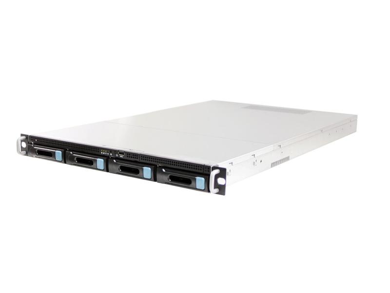 1U Rack、4顆SATA HDD 。 整合型儲存系統,支援 NAS / iSCSI / SAN儲存架構