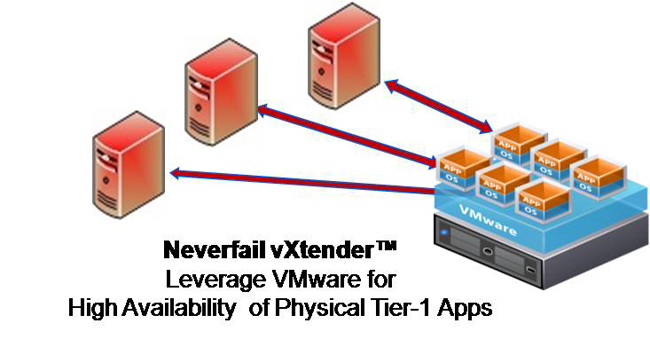 Neverfail 專利技術,可佈署至虛擬機和實體機以及任何混合組成,並在P2V遷移提供了額外的支持,從而無須停機以及無縫的故障恢復。