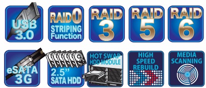By adoption of 2.5 inch hard disks, NX601 series consumes 1/3 power of legacy 3.5″ hard disk RAID system with less weight and space. Meeting 21st century product requirement, our EcoRAID design fulfills environment friendly concept of saving space and energy.